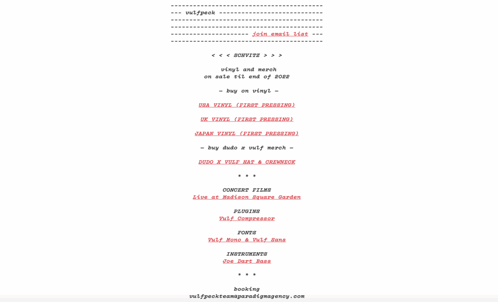 Vulfpeck’s minimalist website reflects the bands’ focus on music over image